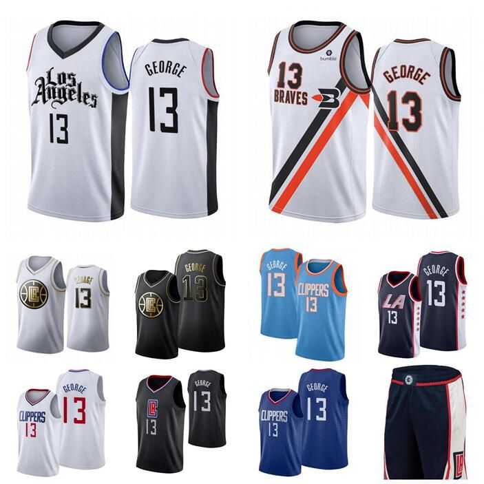 Men S Basketball Los Angeles Clippers 13 Paul George Nba White Blue Latin City Swingman Sleeveless Jersey